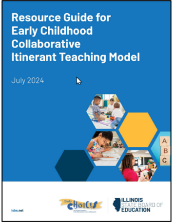 This Resource Guide for the Early Childhood Collaborative Itinerant Teaching Model was developed by Early Choices and the Illinois State Board of Education. It draws from the Policy Statement on Inclusion of Children with Disabilities in Early Childhood Programs, updated in November 2023, by the U.S. Department of Health and Human Services and the U.S. Department of Education which strongly supports the provision of itinerant ECSE Collaborative services. It was developed as a roadmap for service providers (educators, caregivers, special educators, related services providers, administrators, and coaches) when implementing inclusive services in community-based organizations in partnership with Local Educational Agencies (LEA). At the center of an early childhood collaborative itinerant teaching model is the premise of providing systemic supports so that children and families can be served wherever they are together.
